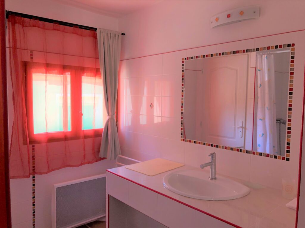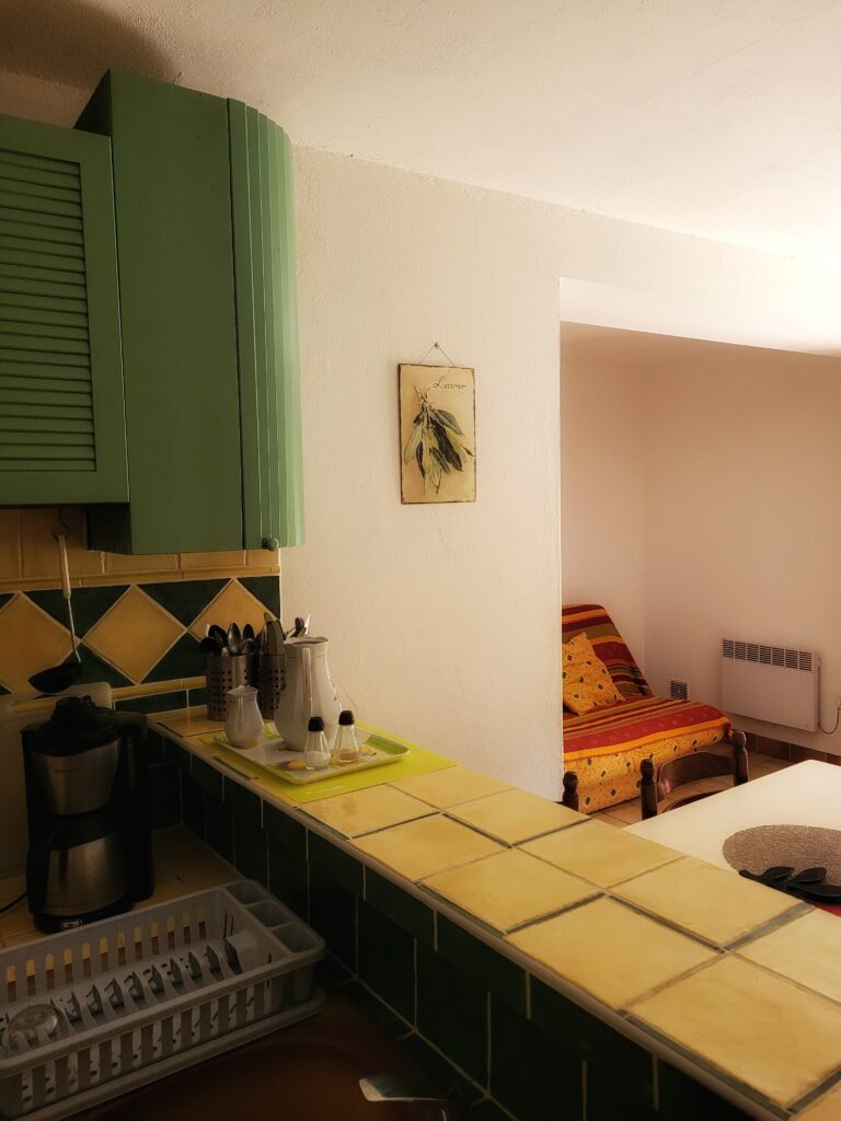 Ce gîte aux couleurs provençales sur deux niveaux est parfait pour passer des vacances ensoleillées en famille. Le RDC comporte une pièce à vivre avec coin salon, salle à manger et cuisine ainsi qu’une salle de bain. L’étage est doté de deux chambres dont la principale donne sur la cour intérieure du domaine. Vous y trouverez une petite terrasse ombragée par une tonnelle en lierre avec table extérieure qui vous est réservée.