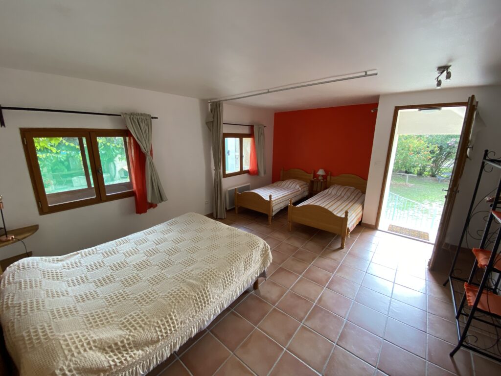 Découvrez notre chambre de style camarguaise. Une location de charme pour un couple ou une petite famille avec accès à tous nos équipement extérieurs.
